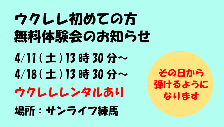 初めてのウクレレ体験会のお知らせです。